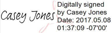 Adobe Digital Signatures (above) display the date and time of your signature and include the Adobe watermark.